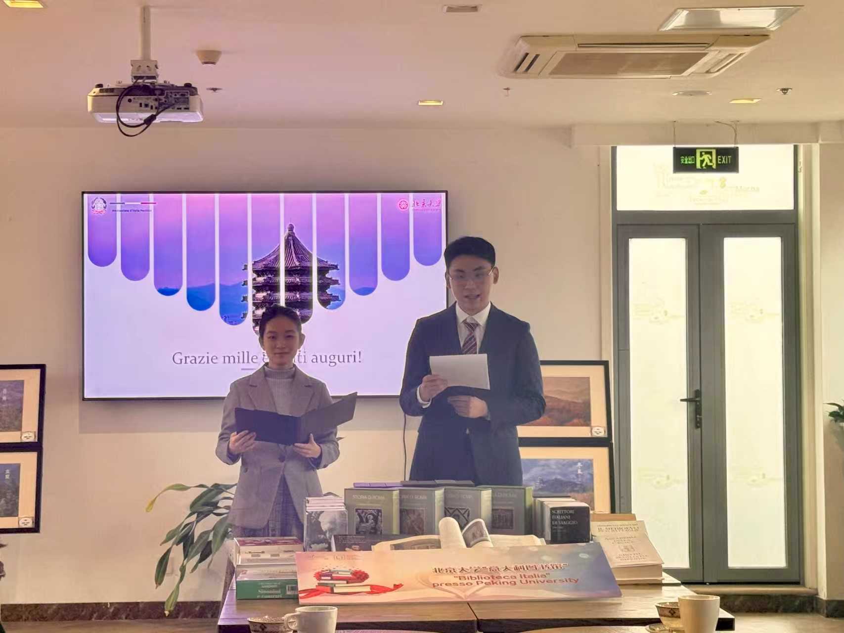 Prof. Chen welcomed Counselor Antonelli and expressed gratitude for his long-standing support of the Italian language program at Peking University. As a long-time friend of the school, Counselor Antonelli has consistently provided support for the development of the program since its establishment. The Italian language program, the youngest among the 21 undergraduate language programs at the school, has achieved significant results in talent cultivation and cultural exchange. Last year, the visit and speech of Italian President Mr. Sergio Mattarella at Peking University further inspired students to engage in Sino-Italian friendly exchanges. Prof. Chen particularly thanked the Italian government for donating nearly 600 valuable books, believing that this collection will provide robust support for the learning and research of Italian language and culture by faculty and students. He encouraged the faculty and students of the Italian language program to create a vibrant discipline that leads the development of Italian studies in China and to establish an internationally influential platform for teaching and research.