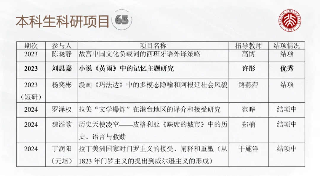 Undergraduate Students of the Department of Spanish, PKU School of Foreign Languages Participating in Research Projects (Partial List)