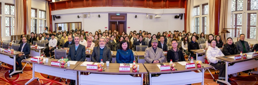 The symposium was attended by Prof. Li Shujing, Secretary of the Party Committee of the School of Foreign Languages, Dr. Abdolreza Rahmani Fazli, Ambassador of the Islamic Republic of Iran to China, Dr. Nematollah Iranzadeh, Cultural Counselor of the Islamic Republic of Iran to China and faculty and student representatives from Peking University, Beijing Foreign Studies University, the University of International Business and Economics, Beijing Language and Culture University, Beijing International Studies University and Tianjin Foreign Studies University.
