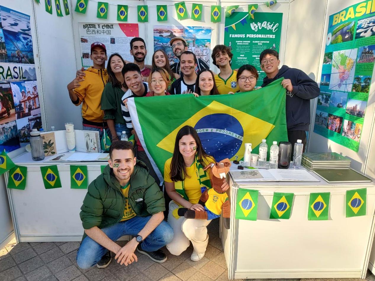 在近几年的北京大学国际文化节上,总能在巴西展位看到安娜的身影。她积极组织巴西展位的筹备、摆设和接待工作,邀请在北大的巴西学生们集思广益,那一抹热情四射的黄绿色总是全三角地最亮眼的色彩。在她的号召下,一名同学带来了巴西特色鸡尾酒caipirinha;一名同学提前联系了巴西烤肉餐厅拉蒂娜,带来了特色小吃;一名同学甚至带来了迷你足球和球门,展现“足球王国”的魅力……展位吸引了不同国家、不同专业的同学们,在国际文化节真实地看见国际文化。