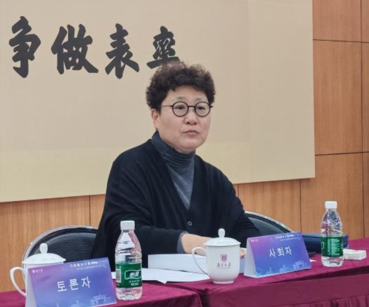 在文学分论坛,阿娅古兹·木合亚提同学宣读了论文《朝鲜朝中期李滉梅花诗中的“梅花”意象研究》,徐瑞佳同学宣读了题为《神话的科幻生产:金宝英<<>进化神话>中东西方变形母题的本土化再现》的论文。南京大学郑墡谟教授、成均馆大学金康恩(音)教授分别从问题意识、分析方法、思辨性与主旨等层面对两位同学的论文进行了点评。琴知雅教授担任古典文学分论坛主持人,并点评学生论文。