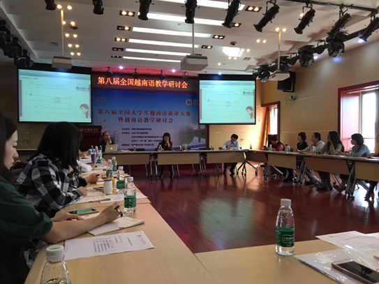 演讲比赛结束后,9月29日上午举行了全国越南语教学研讨会,来自全国高校越南语专业的近30名教师参加了研讨会。研讨会主题为“新技术手段在越南语教学中的应用”,来自解放军外国语学院、广西民族大学、广西大学、西南林业大学、广东外语外贸大学等院校的教师作了主题发言,与会教师畅所欲言,相互切磋,热烈探讨了多媒体技术在当今越南语教学中的辅助作用。