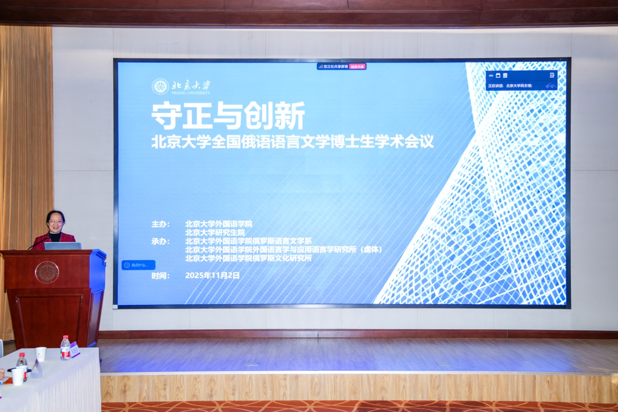 2025年11月2日,“守正与创新——北京大学全国俄语语言文学博士生学术会议”在北京大学外国语学院民主楼和外国语学院新楼成功举办。本次会议由北京大学外国语学院与研究生院联合主办,外国语学院俄语系、外国语学院外国语言学与应用语言学研究所(虚体)与外国语学院俄罗斯文化研究所承办,是北京大学“研究生教育创新计划”支持的重要交流活动。北京大学党委副书记、副校长宁琦教授,北京大学研究生院培养办瞿毅臻副主任,北京大学外国语学院副院长吴杰伟教授,校内外评审专家代表,北京大学外国语学院俄语系教师,以及来自国内外高校与科研机构的31名博士生参加了本次会议。