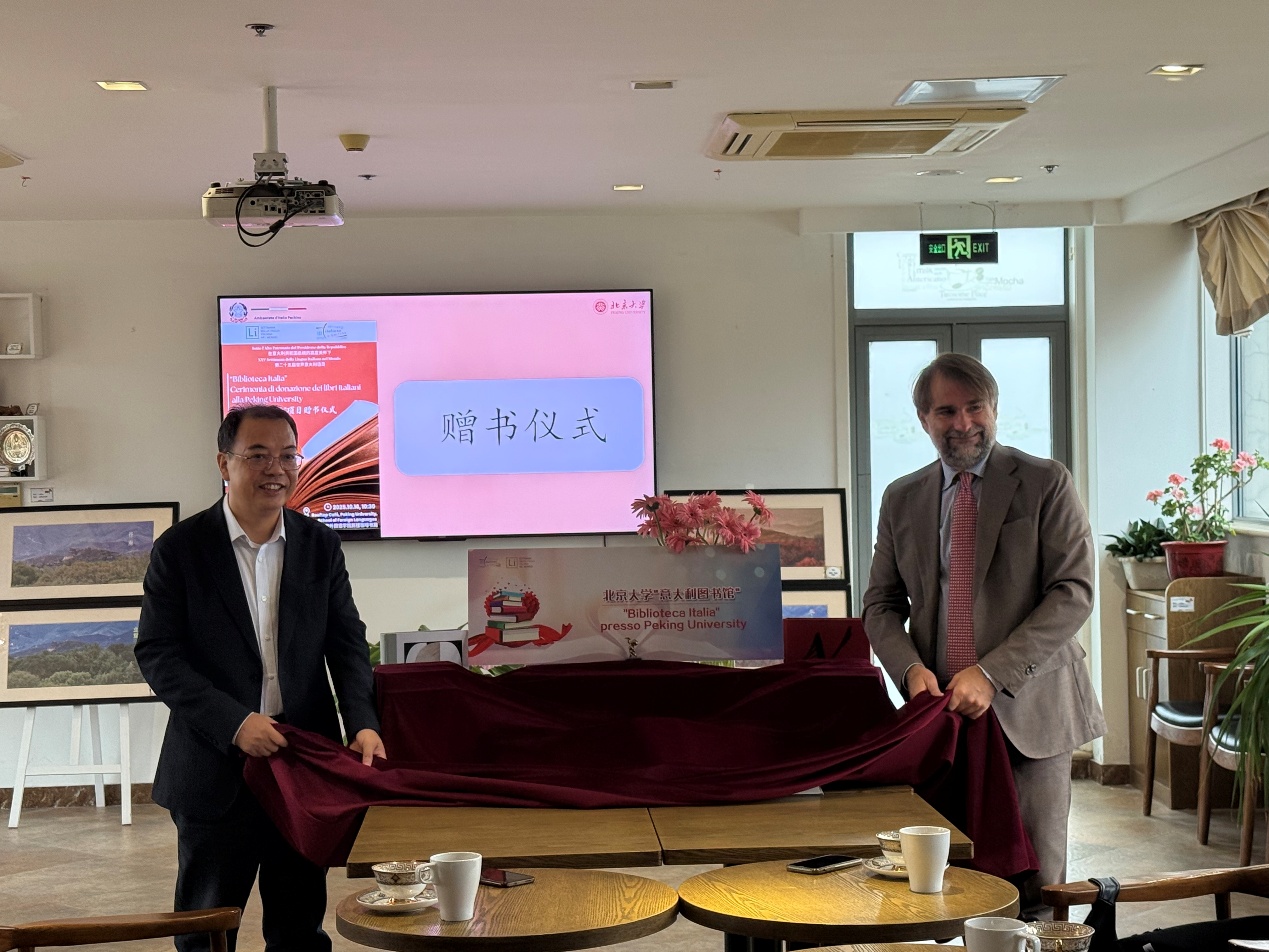 10月16日上午,“意大利图书馆项目”赠书仪式在外国语学院新楼咖啡书苑顺利举行。意大利共和国驻华大使馆文化参赞费德利克先生(Federico Roberto Antonelli)与北京大学外国语学院院长陈明教授共同出席并致辞。